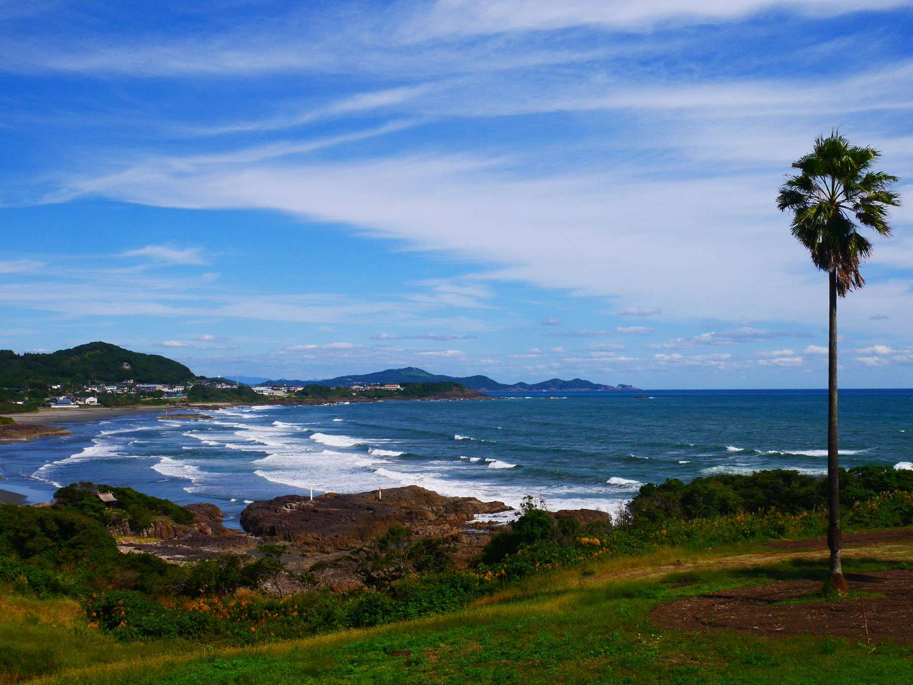 その海岸線には、日本の渚百選の「お倉ヶ浜」、日本の快水浴場百選の「伊勢ヶ浜」、そして、サーフィンの名所として全国的に知られる「金ヶ浜」などがあり、南国情緒のある風景が魅力的です。